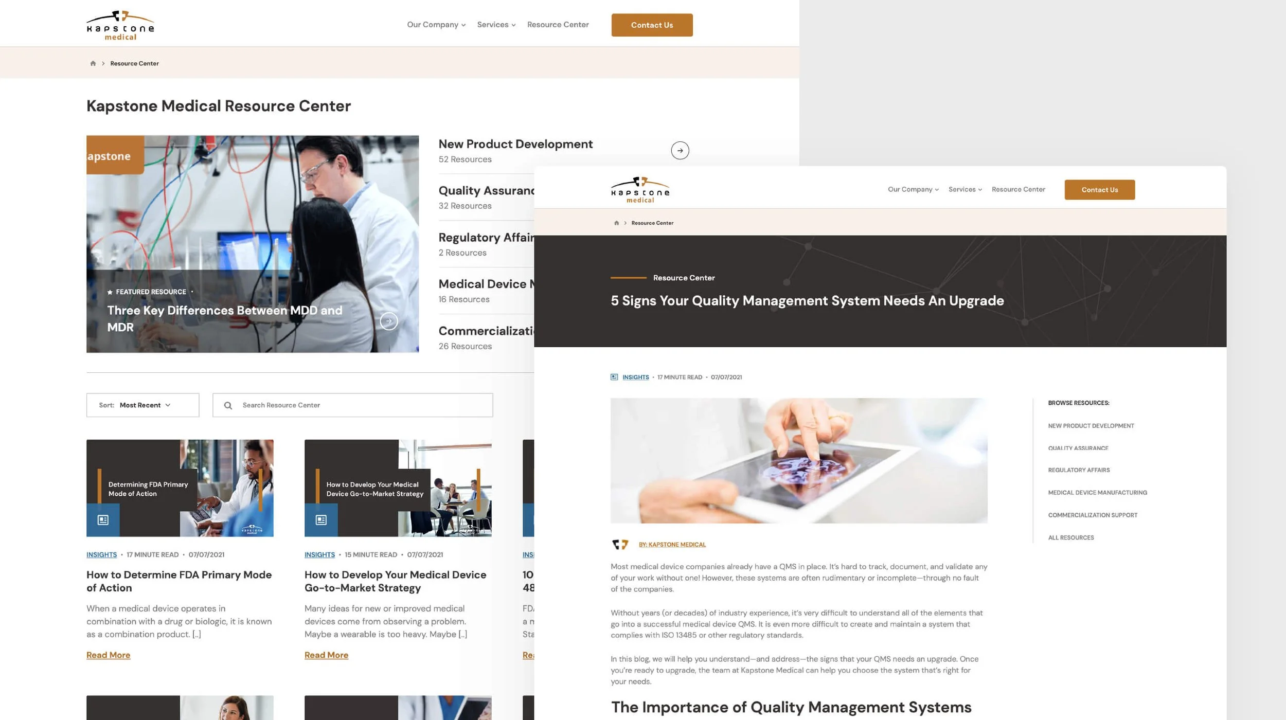Delivered a modern, mobile-responsive website that clearly conveyed Kapstone’s expertise in medical device manufacturing and consulting